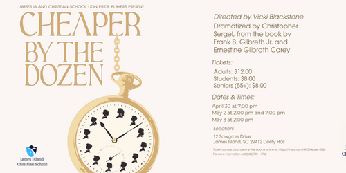 Join us for a delightful evening of laughter and heart as our talented students bring Cheaper by the Dozen to life on stage! This classic story is full of humor, family, and unforgettable moments you won’t want to miss.